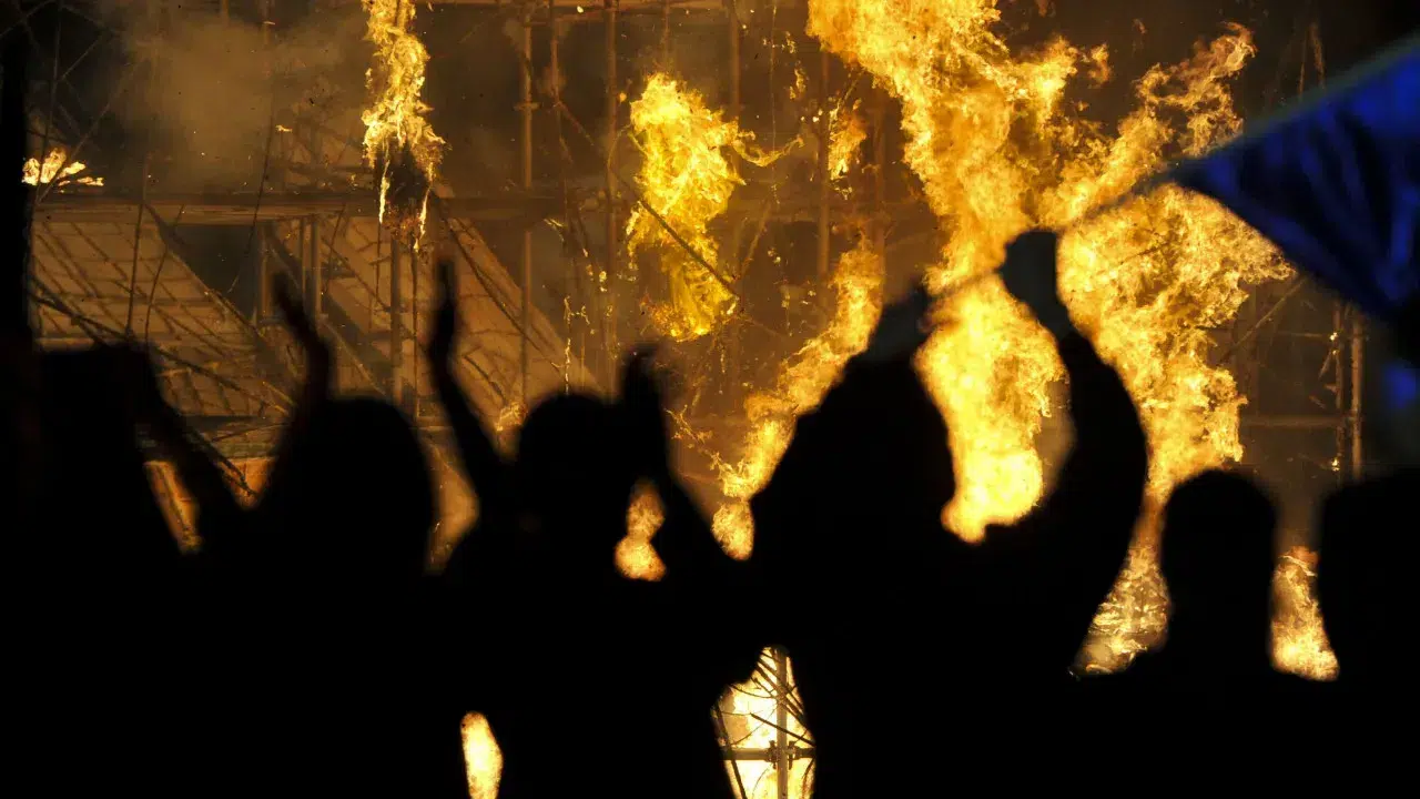 “The ‘Queima do Judas’ is created anew: the text and dramaturgy ideas, music composition, set design, costumes, and fire, all prepared and devised in advance, but entirely constructed in five days,” he stressed.